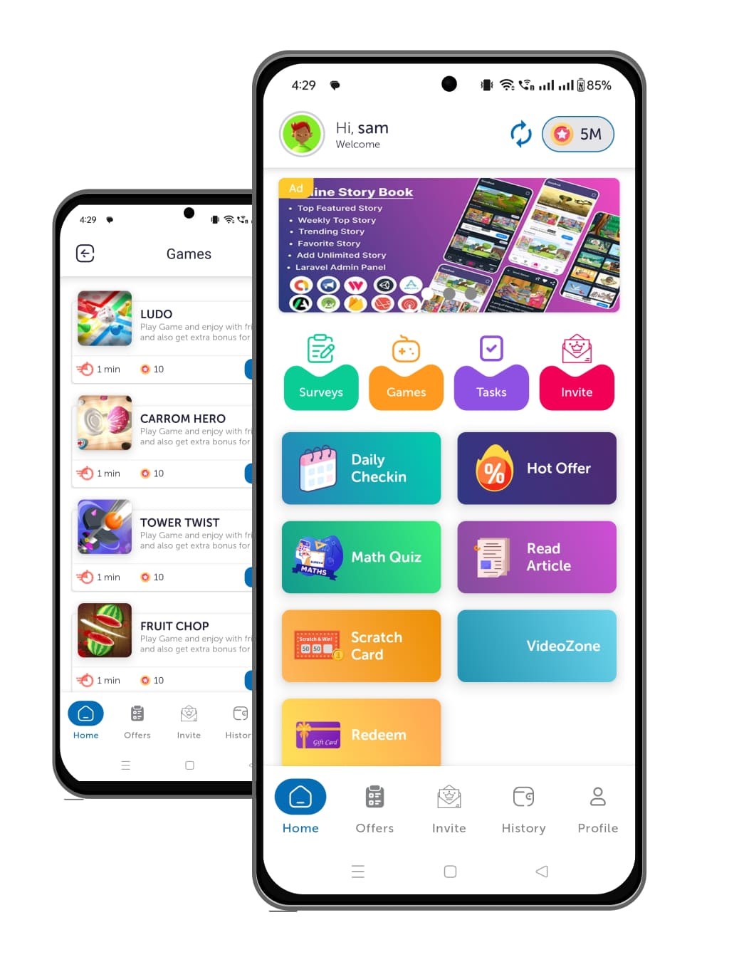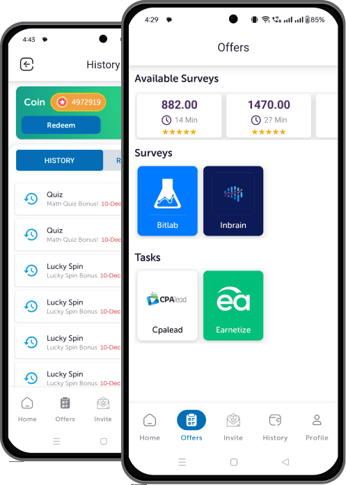 complete offers, Surveys and earn unlimited there is no limit. manage your all earning in history section. so you can easily check from where you earned.